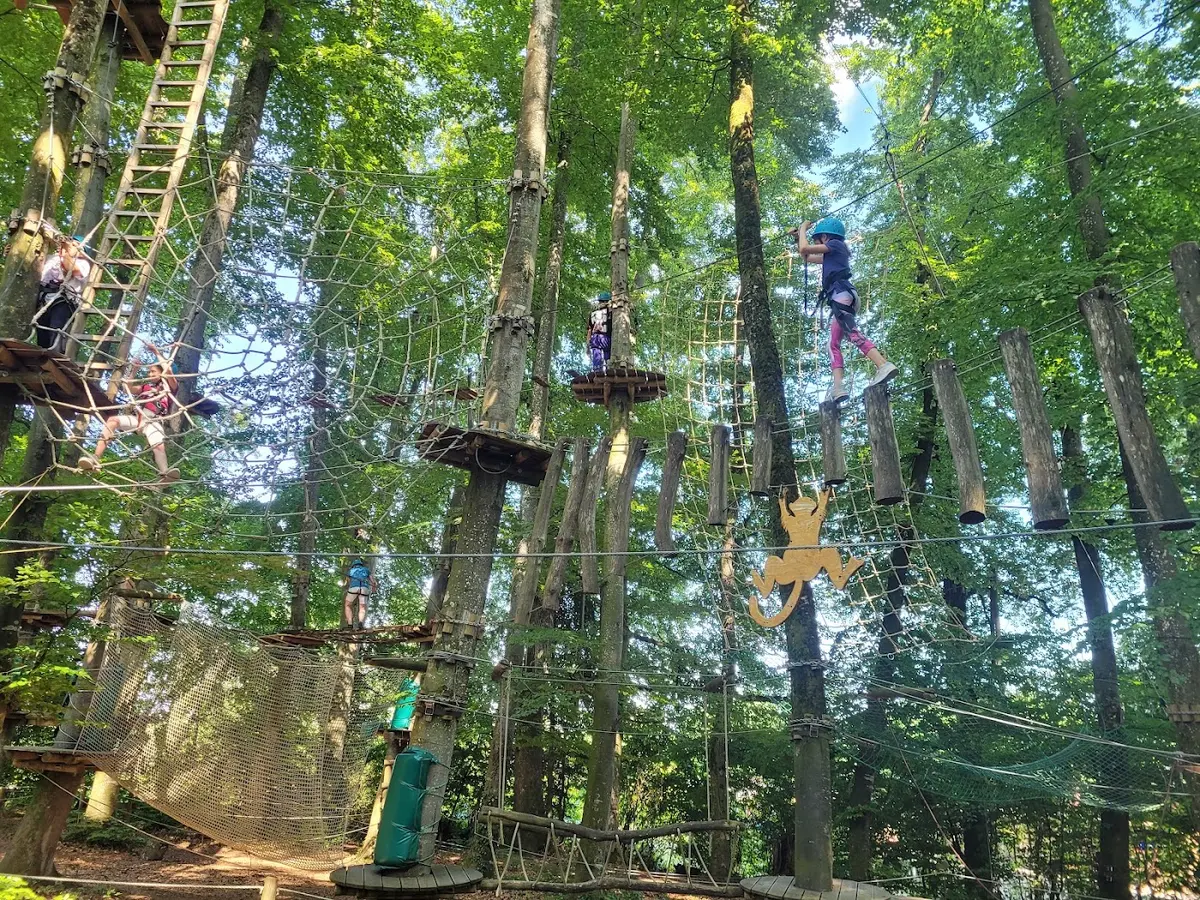 Der AbenteuerPark Immenstaad bietet Kletterspaß für alle Altersgruppen inmitten eines Waldes am Bodensee. Mit 12 Hochseilparcours, 2 Kids-Parcours und über 180 Kletterstationen zwischen 4 und 15 Metern Höhe ist für jedes Level etwas dabei. Kinder ab 3 Jahren starten im Kids-Parcours, ab 6 Jahren geht es in die Höhe. Familien profitieren von vergünstigten Eintrittspreisen.