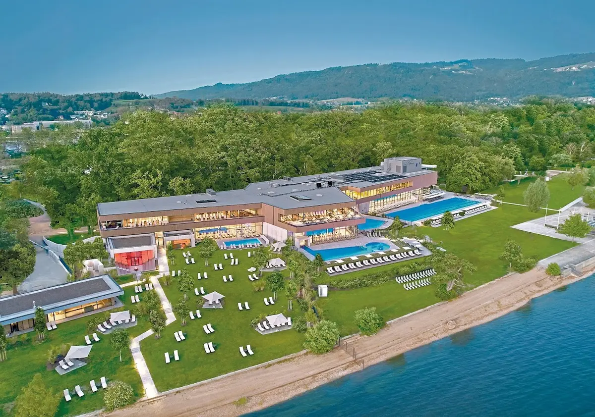 Wellness-Therme mit Außenbecken, Rutschen und Kinderbereichen direkt am Bodenseeufer.